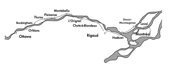 Après avoir quitté Rigaud, on emprunte le Chemin de l’Anse puis la rue Main à Hudson. On voit occasionnellement la rivière des Outaouais. Plusieurs haltes sont possibles en route.